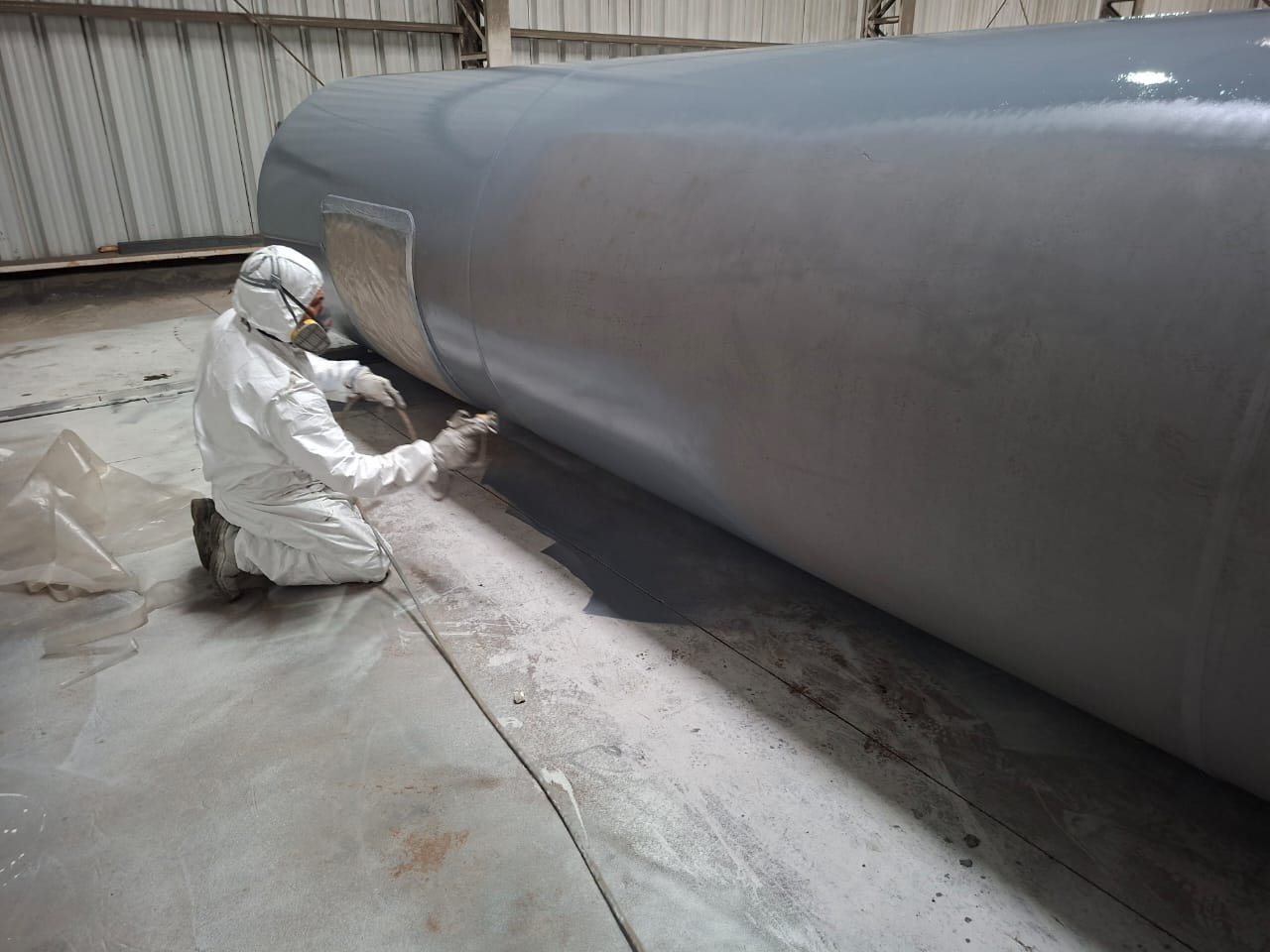 Cañerías y estructuras de plantas industriales. Tuberías de gran diámetro en centrales hidroeléctricas. Estanques interiores y exteriores. Barcos en dique y a la gira.